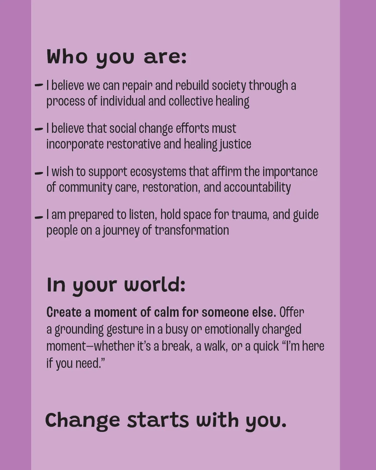 I help people process pain. I recognize trauma in my community and offer care, reflection, and support to begin mending what’s been harmed.